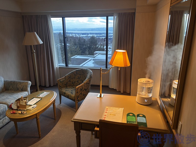 今回は冬の滞在だったので、ホテルから雪景色と夕日が織りなす絶景を楽しめました。